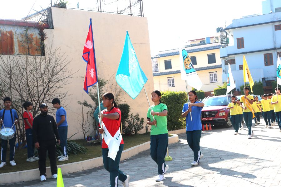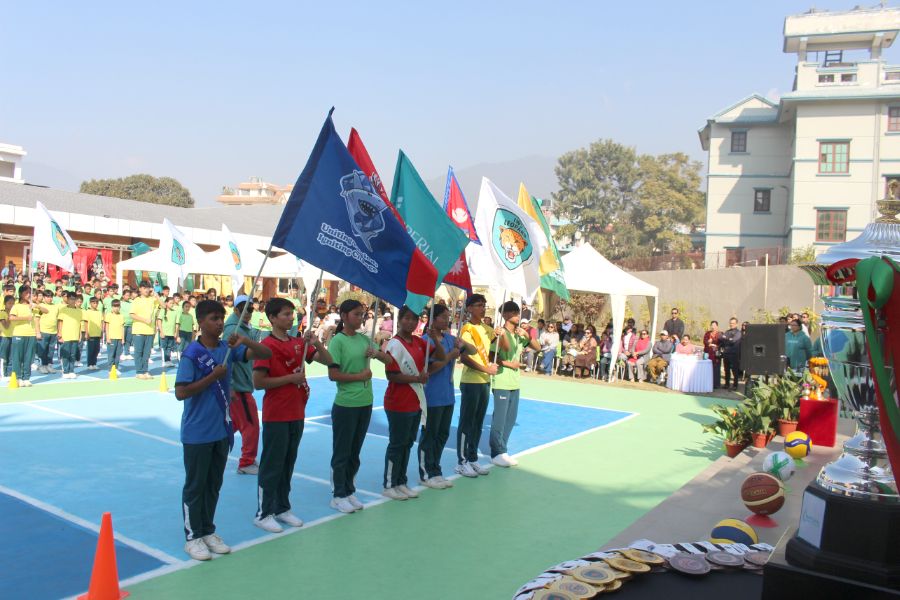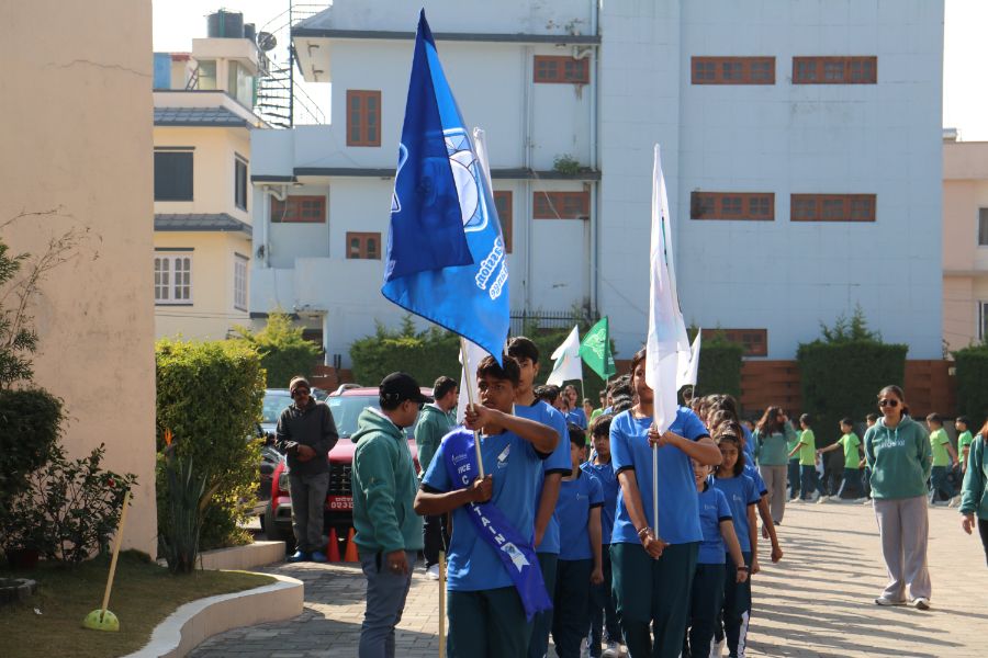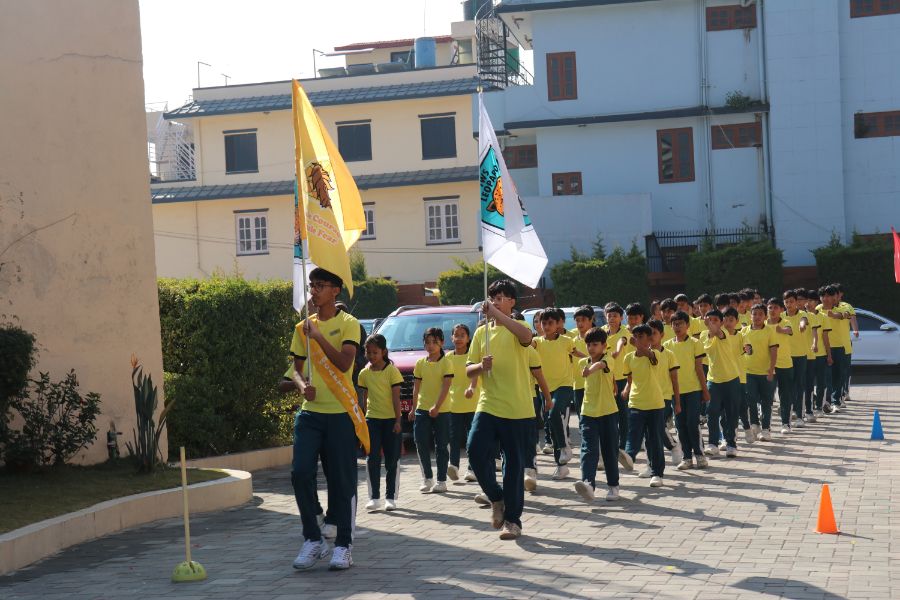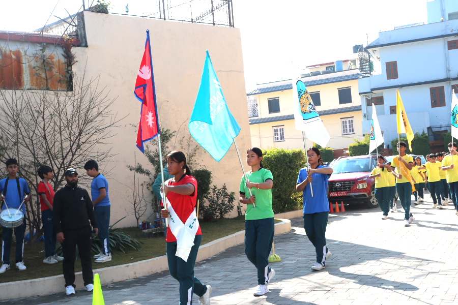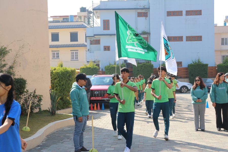 The ceremony began with march pasts by Elementary, Middle, and Secondary students, followed by the National Anthem, oath-taking ceremony, and a graceful lighting of the ceremonial lamp by our respected Chairman, Chief Guest, Principal, and Vice Principal.