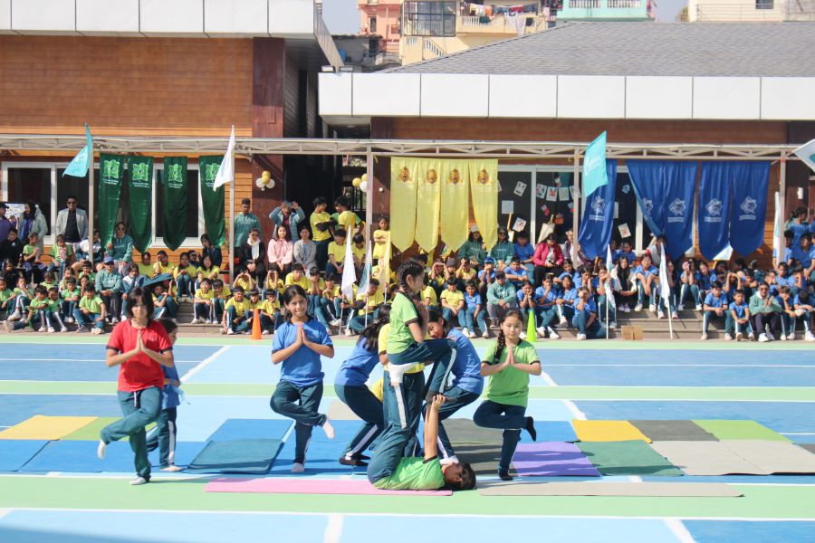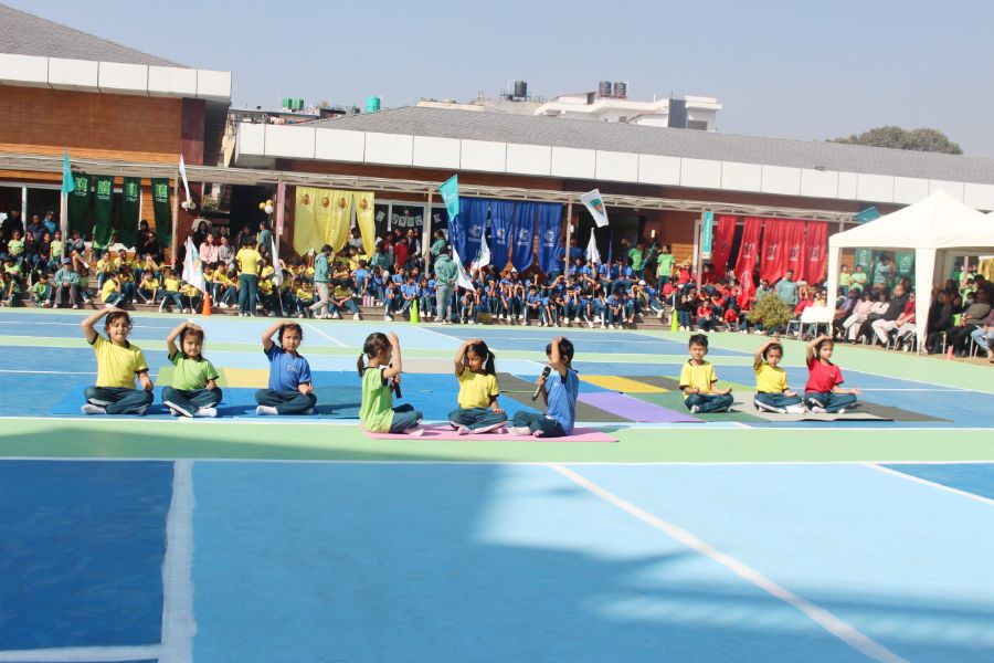 Highlights of the event included captivating dance drills, a calming yoga demonstration, an impressive Taekwondo performance, and the symbolic smiley balloon release, marking the official commencement of the Sports Meet.